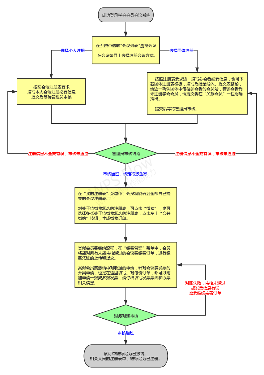 所有学会会员均需先登录本系统进行会议注册操作。为帮助会员熟悉新系统的操作流程,我们制作了几张操作流程简图,请点击下面链接打开参考。